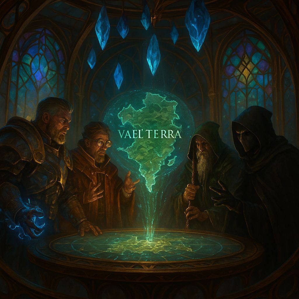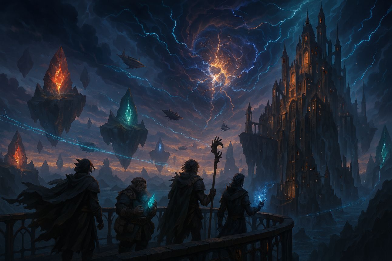 Centuries ago, the Skyforge — a divine engine that kept the floating continent of Vael'Terra aloft — shattered. Now, gravity-defying islands drift apart, and elemental guilds vie for control of the forge’s scattered shards. The players begin in a skyport town as an ancient shard stirs awake, threatening to tip the balance of magic and power.