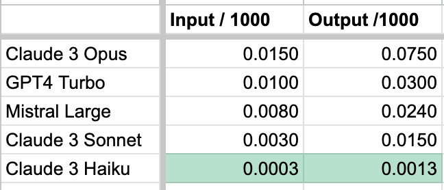 Then we have Sonnet and Haiku, Claude’s medium and small models, respectively. With each model comes benefits and drawbacks, including vast price differences.