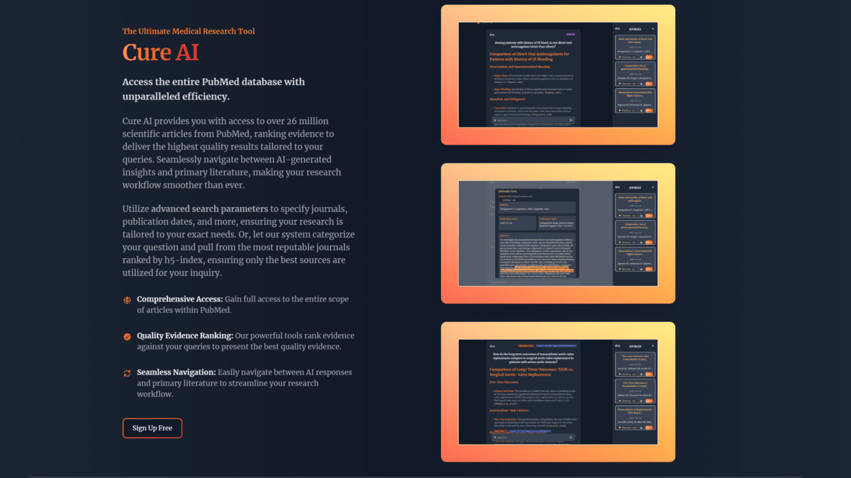 Cure AI | Transforming Medical Research: Cure AI streamlines research with AI, ranking 26M+ PubMed articles for relevance and quality.